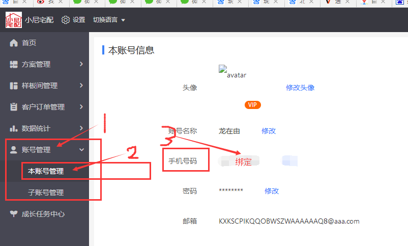 3.2).綁定手機號——在帳號管理->子帳號管理->手機號碼處綁定手機號(手機號碼要求未在酷家樂注冊過的手機號)。