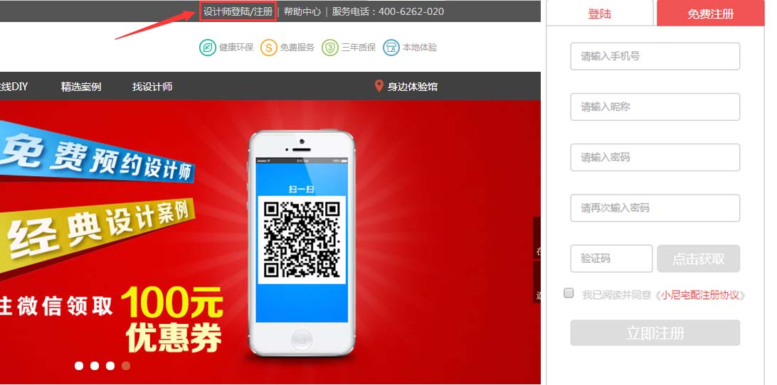 1.2)如已注冊過賬號,可直接點擊“請登錄”。沒有注冊過帳號的請點擊“注冊”。(注:填寫個人信息昵稱須為設(shè)計師的姓名,四個漢字以內(nèi)。)