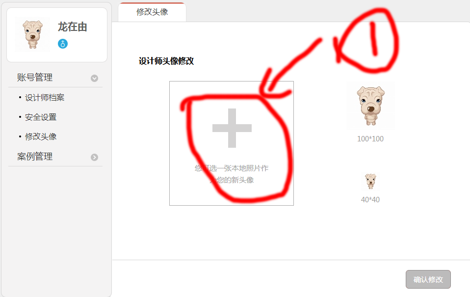2.1).上傳后不滿意可在個人信息管理里面點擊修改頭像進行修改。點擊“+”進行上傳。