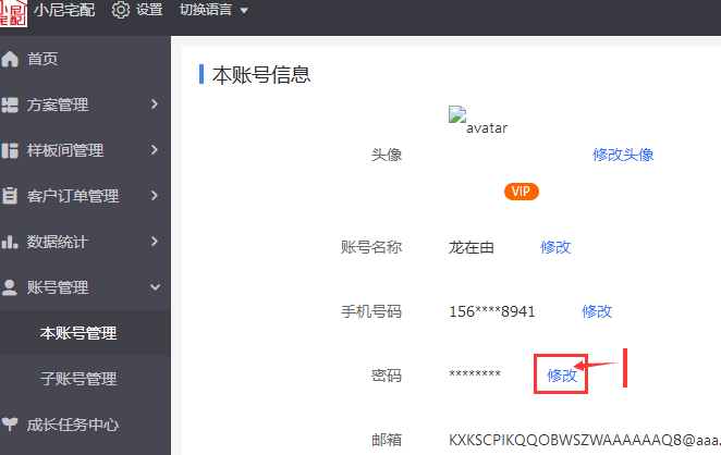 3.3).修改密碼——在帳號管理->子帳號管理->密碼處修改密碼。
