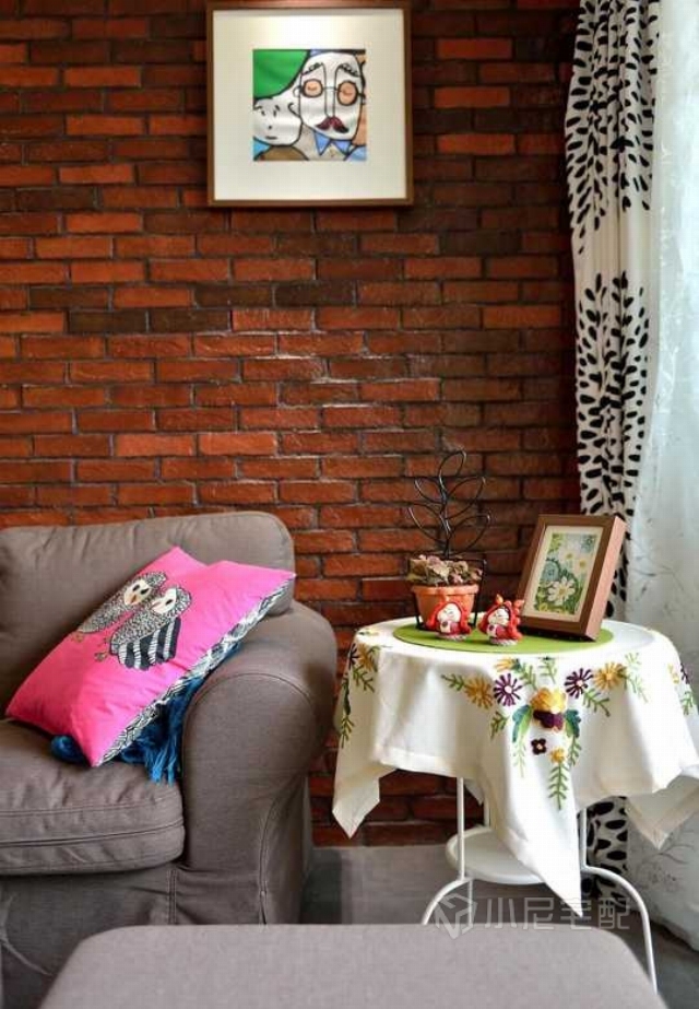 客廳墻面肌理采用低溫陶土磚,讓整體的格調(diào)和風(fēng)格和諧統(tǒng)一。