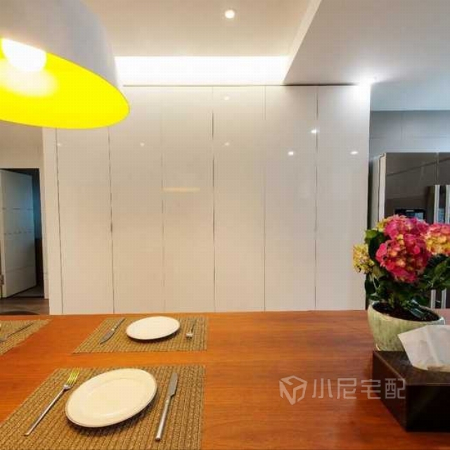 餐廳邊做了一個(gè)一體式的柜體,儲(chǔ)物功能大大提升。
