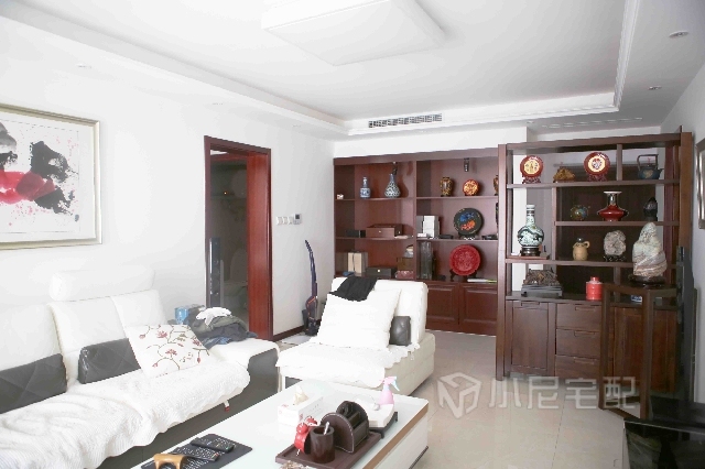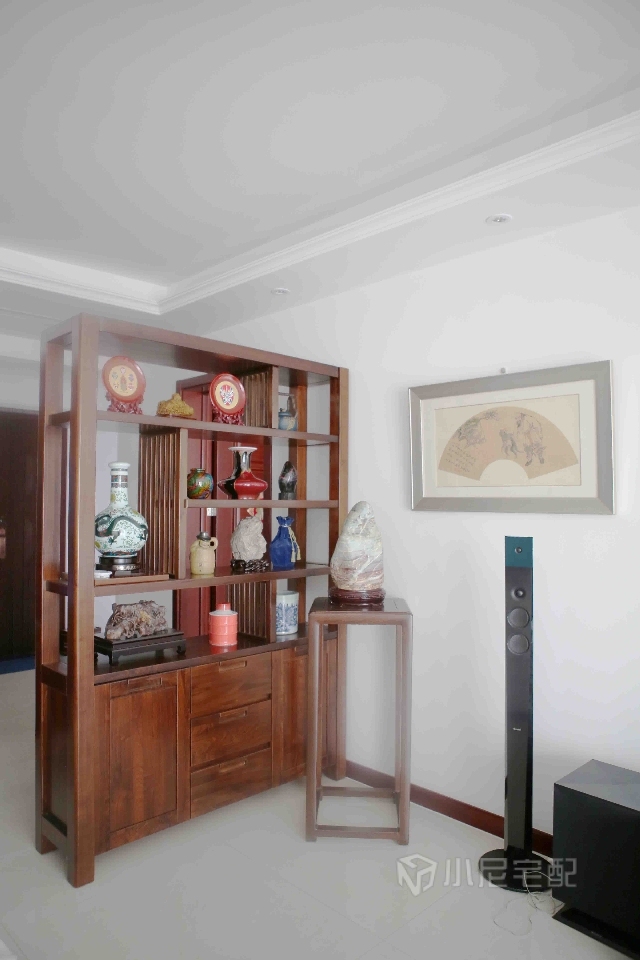 物品展示柜與博古架,巧妙的隔開客廳與臥室,在保護隱私的同時也裝點了整個空間。