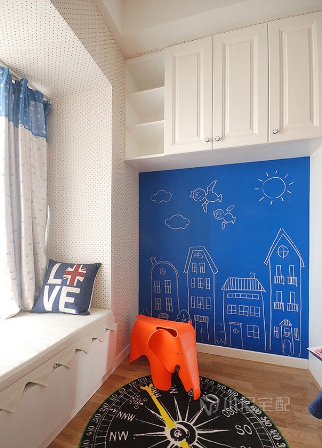 空間跳躍的色彩搭配淺色系的家具,增加了兒童房的活力。