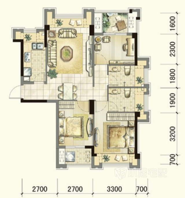 戶主對房子原本的格局非常不滿,拆改的位置有很多。第一步是把次臥打通,改造成小客廳,讓剛回家的人視野開闊。留下一面半墻,隔開客廳與陽臺。陽臺面積超大,充分利用起來,設(shè)計成書房,使用玻璃天窗,形成陽光書房,并且能夠照亮沒有窗戶的客廳,良好的采光能使人心情開朗。書房里多余的空間設(shè)計出儲藏室。家裝家具一體價:10萬。