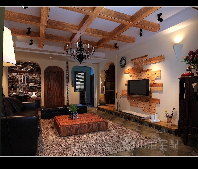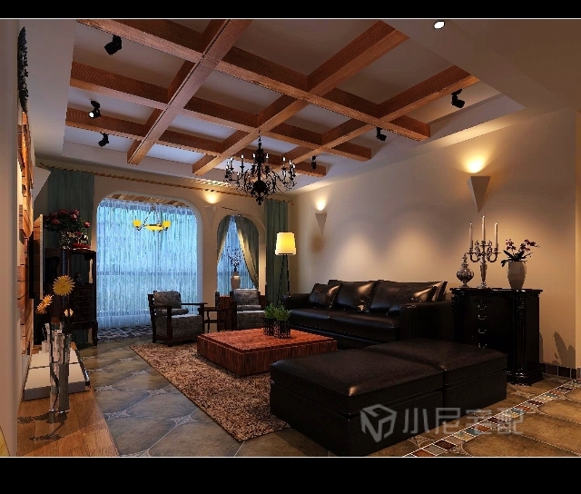 客廳頂部的設(shè)計(jì)與家具相互照應(yīng),完美結(jié)合