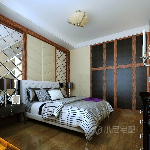 臥室背景墻簡潔大氣 軟包和玻璃的更好結(jié)合。