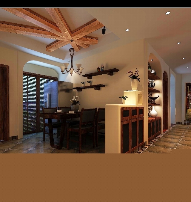 餐廳上面的吊頂別具一格。