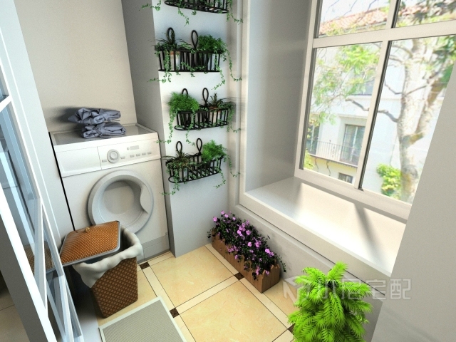 洗衣機(jī)放浴室怕受潮,放廚房又占地方,陽(yáng)臺(tái)可以好好利用起來(lái)。通過(guò)定制置物架,把陽(yáng)臺(tái)的部分空間做成洗衣房,洗衣、晾衣、燙衣,都可在陽(yáng)臺(tái)上完成。除了洗衣外,還可以設(shè)計(jì)收納柜,種植花草等等。