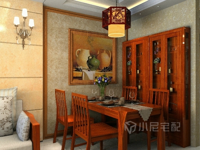 一家人吃飯的地方,靠墻的酒柜還可以放置常用的水杯等物品。