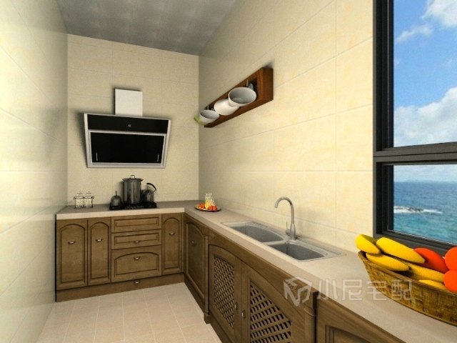 廚房采用了L型櫥柜設(shè)計(jì),將各個(gè)角落都利用了起來。
