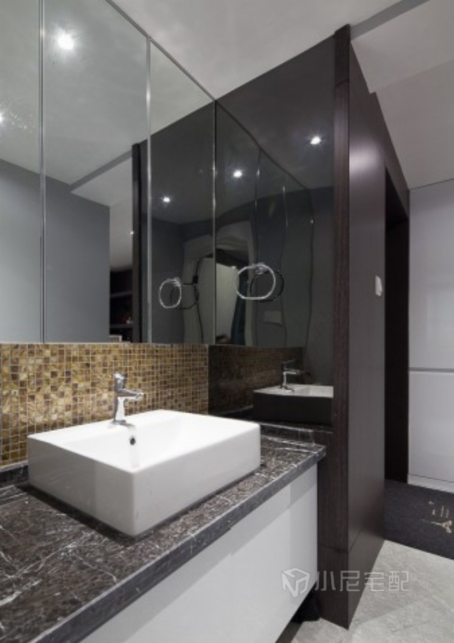衛(wèi)生間主用黑白兩色,整體看起來干凈利落同事又不失豪華大氣。
