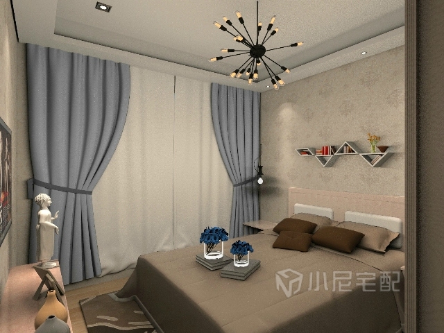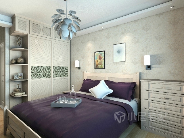 床頭放個五斗柜大大增加了儲物空間,轉(zhuǎn)角衣柜放一些小飾品,