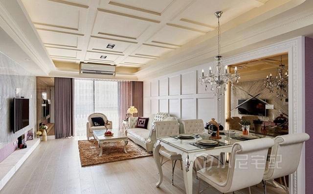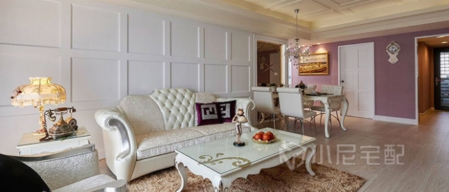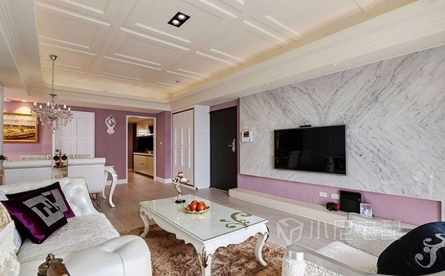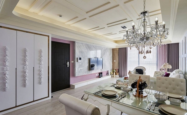 紫羅蘭色與白色搭配出清新浪漫氛圍。同時又不失高雅。家裝家具一體價:14萬。