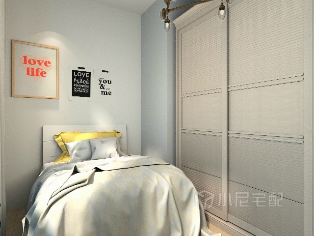 簡單的床配上簡單的畫,簡單的搭配,使整個(gè)空間更簡單。
