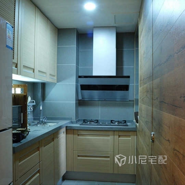 灰色啞光磚和木色門板無非是最舒服的搭配手法,廚房冷凍保鮮、洗、切、配、烹飪于一體,功能明確流暢。