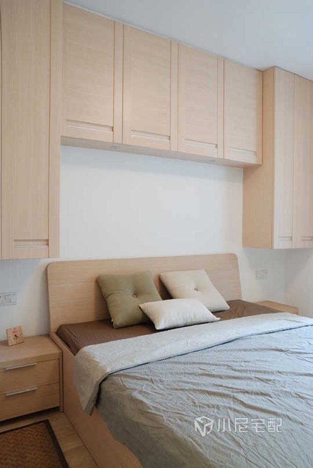 臥室不僅僅是休息的空間,同時(shí)可以在床頭增加一整排的吊柜,充分提高了儲(chǔ)物收納空間。