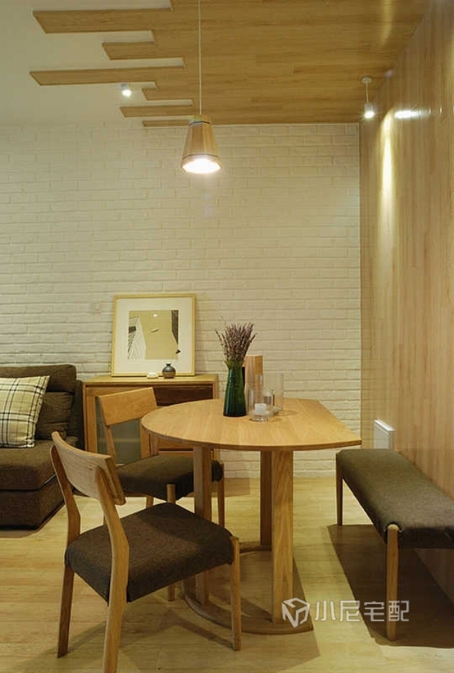 一柜多用的成品邊柜既是餐廳的裝飾柜也是客廳的儲(chǔ)物柜,使客餐廳有了互動(dòng)性。