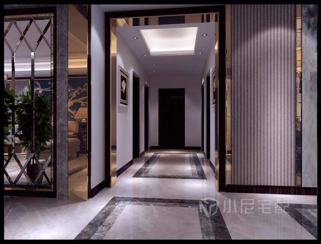 入戶走道,因采光問題,設(shè)計(jì)中所有埡口采取不銹鋼材質(zhì)及鏡面的一下材料。達(dá)到走道的采光需求。