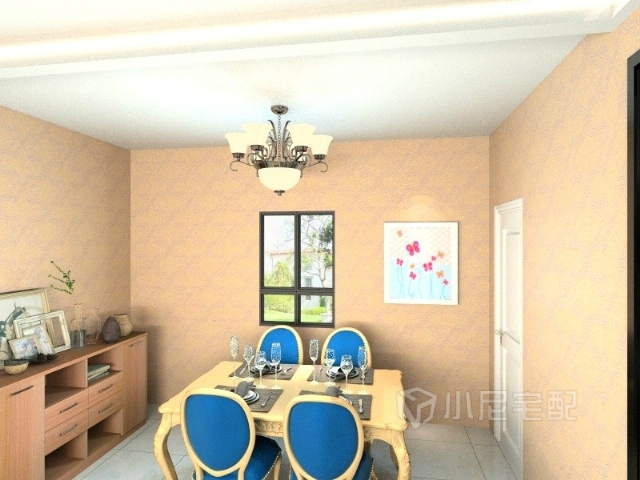 餐廳用藍色和黃色,用臨近色系搭配。時尚感十足。