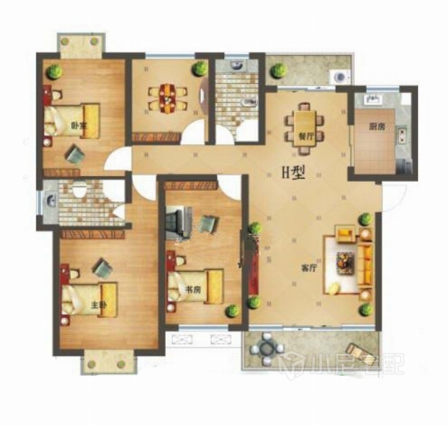 客戶特別喜歡花草,家里到處可見,主臥有種唯美小清新的感覺,屬于小女人的幸福。家裝家具一體價(jià):24萬。