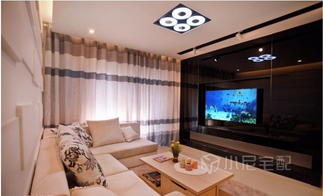 客廳背景墻B面:從簡單利落的線條開始,搭配自然光線與輕淺色調(diào)的材質(zhì)運用,為整體空間營造清新自然的氛圍,雖然簡單卻不失溫馨感。