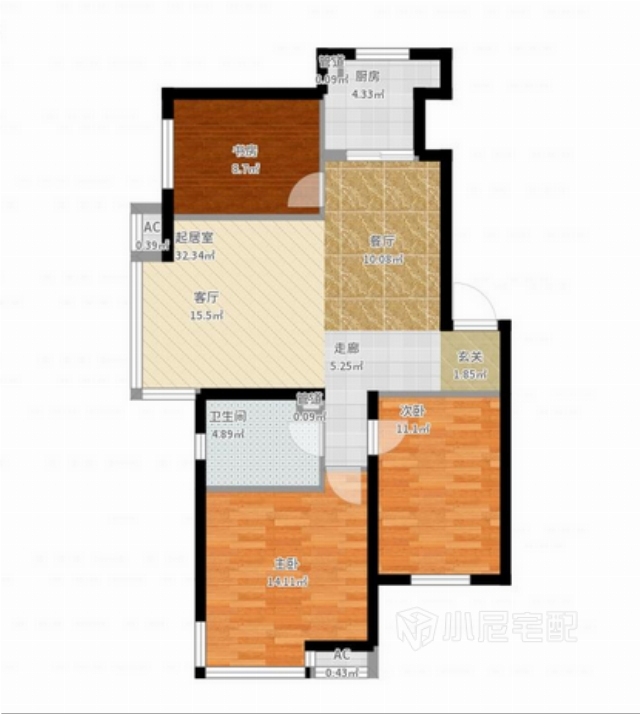 臥室:主觀是讓室內(nèi)更顯明亮,木制家具保留自然紋理,帶您走進一股清新的森林感。