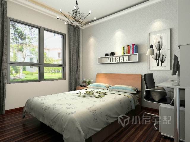 主臥的基調(diào)是樸實,不管是吊頂,還是原木色的大床,都帶著簡明的顏色和線條。