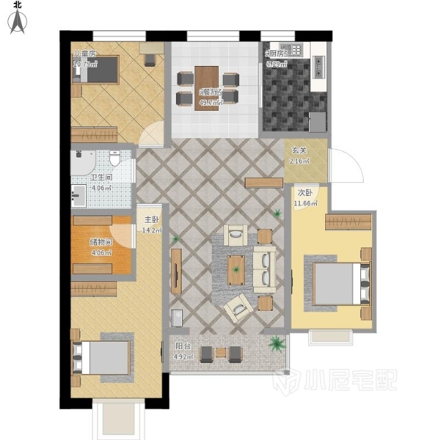 這是一間建筑面積117平的三室兩廳, 如果你不想讓家過于繁雜與奢華,但是又不愿意缺失情調(diào)和精致,那就選擇現(xiàn)代簡約風(fēng)格吧。家裝家具一體價:14萬。