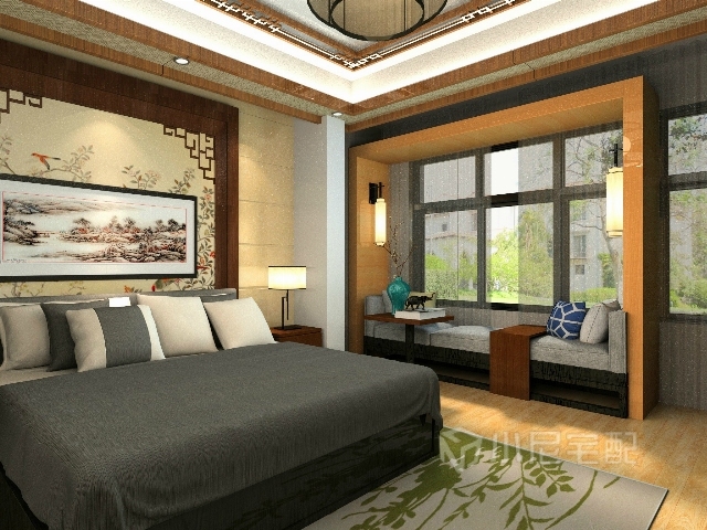 深色的床頭搭配中式的背景畫,更能體現(xiàn)出東方的韻味。