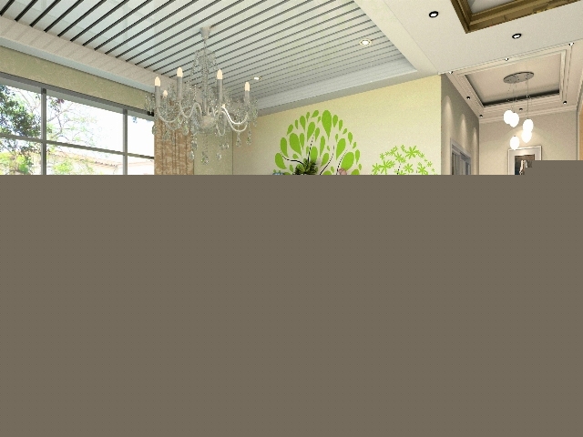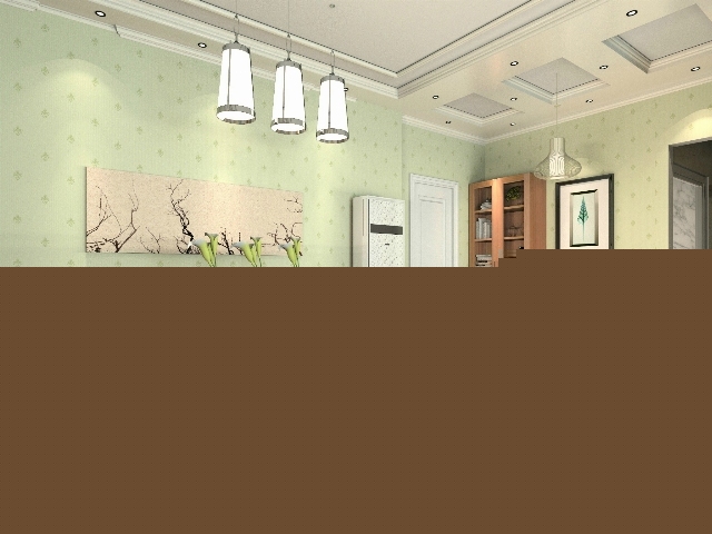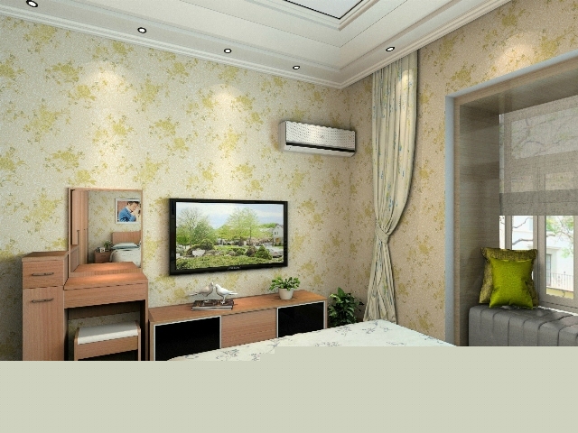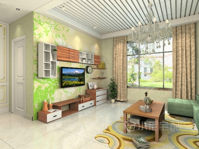 電視背景墻的一抹綠色墻紙給整個(gè)不大的空間帶來了生機(jī)。