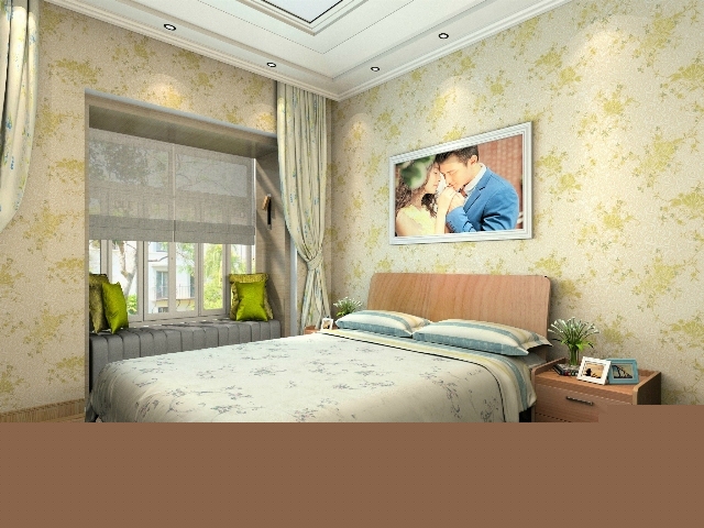 臥室的采光非常好,墻上還掛著他們的結(jié)婚照。