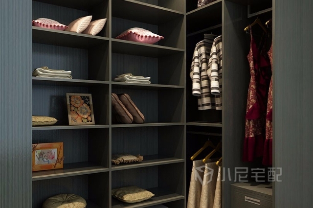 寬敞的小尼定制衣帽間讓雜亂的衣服和小物件各有其位。