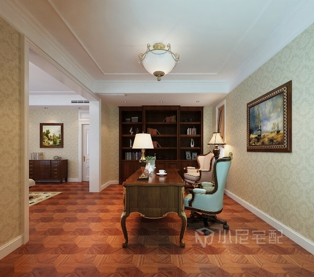 書房在傳統(tǒng)家具的基礎(chǔ)上經(jīng)過(guò)提煉使其帶有時(shí)尚的氛圍。