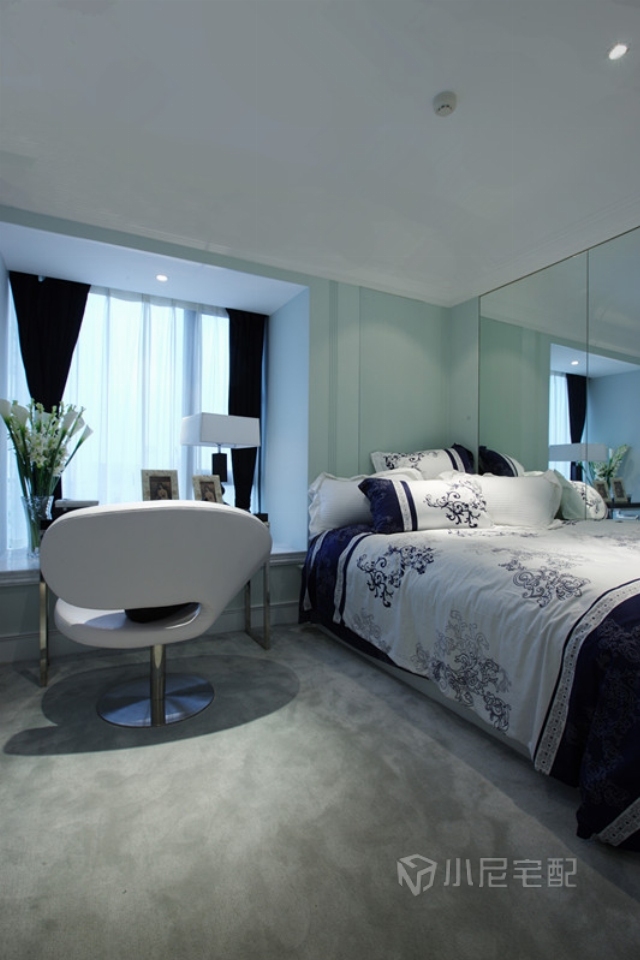 優(yōu)雅的線條,配合現(xiàn)代風(fēng)格的梳妝臺,讓整個空間顯得清新優(yōu)雅。