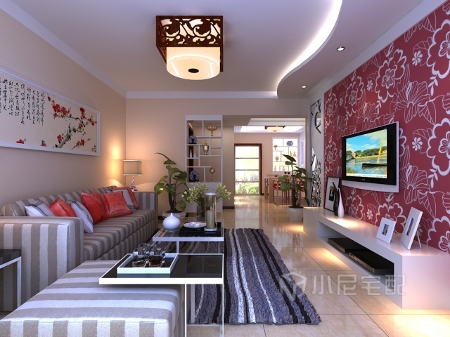 客廳的單邊弧線吊頂,簡(jiǎn)約不簡(jiǎn)單,有點(diǎn)小個(gè)性。