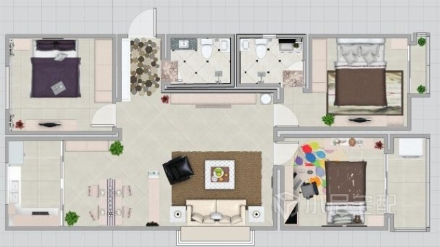 暖木色與象牙白的搭配,溫馨中不乏明快。。