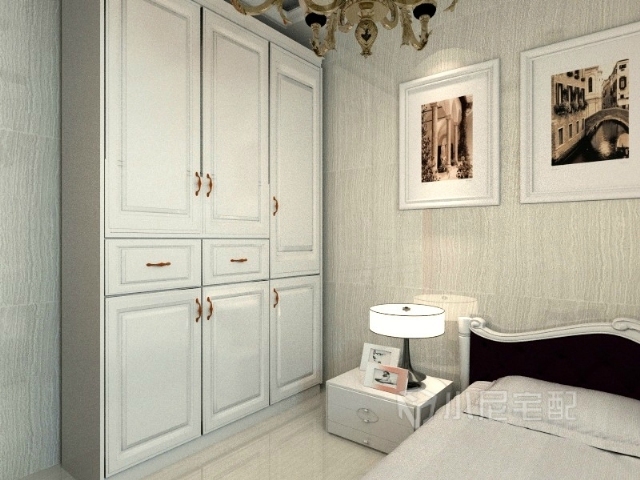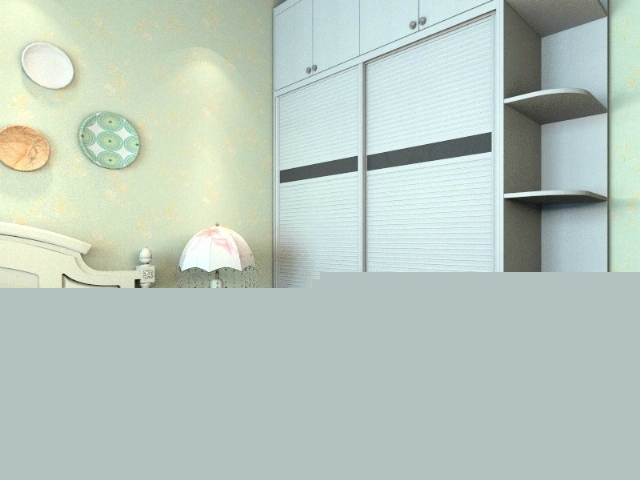 白色的推拉門(mén)衣柜,搭配白色的平開(kāi)門(mén)頂柜,使臥室顯得潔凈,自然。