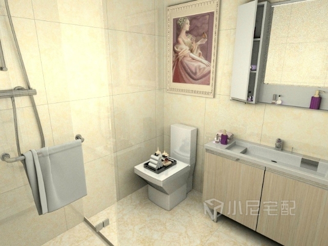 淡黃色的墻磚的搭配黃色的洗手池,溫馨、自然。