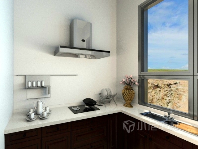 潔白的墻面以及白色大理石桌面不銹鋼吸油煙機給人帶來前衛(wèi)、不受拘束的感覺。