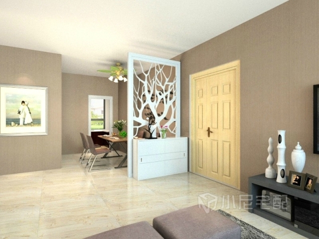 客廳和餐廳區(qū)域用裝飾架巧妙的劃分了功能空間背景墻沒有在造型上求太多的變化,表達出空間的縱深感及延續(xù)感