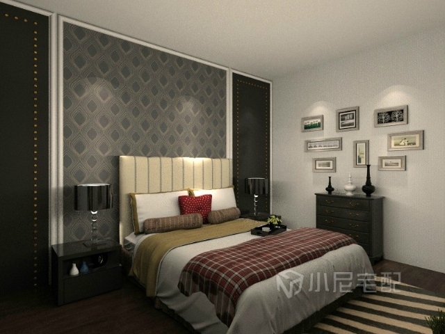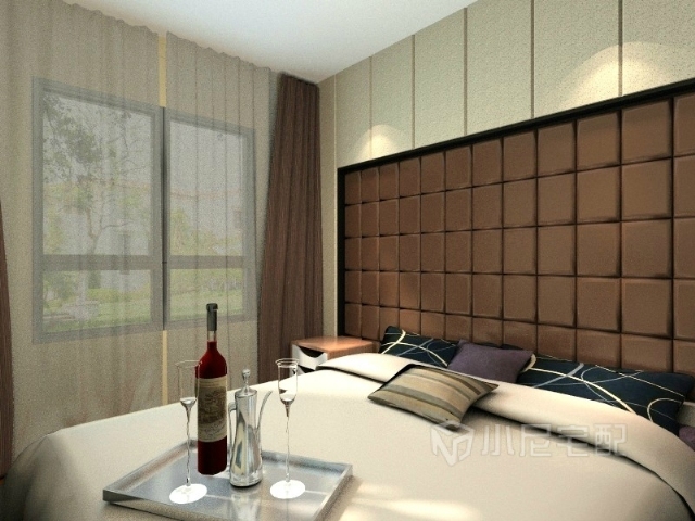 米黃色墻壁和巧克力顏色的床頭給人以素雅的感覺。相比主臥的黑白色調(diào)溫馨不少。