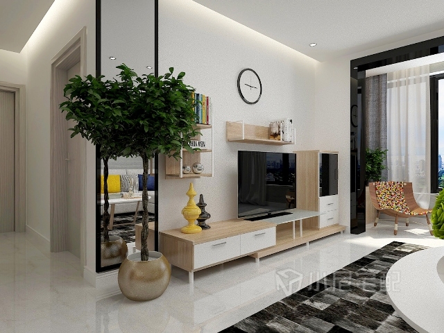 客廳電視背景墻,簡單時尚,更有利于擴大空間規(guī)模的視覺印象,烘托出客廳的和諧、融洽的氣氛。