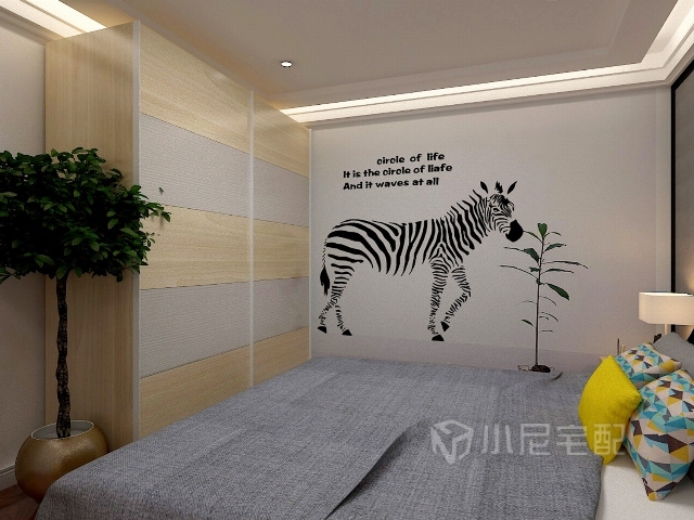 次臥室床倆側的衣柜即使用又美觀,而且節(jié)約空間。還可以躺在舒適的床上看書。