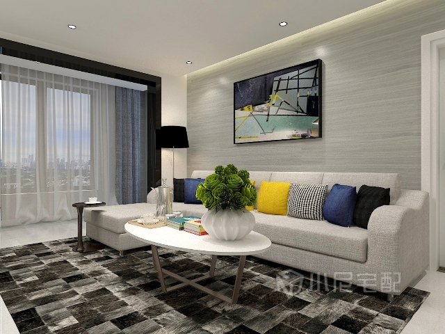 簡約風格的客廳,給人視覺的、精神的享受。白色的沙發(fā)與白色的茶幾完美的融合,既美觀又實用。