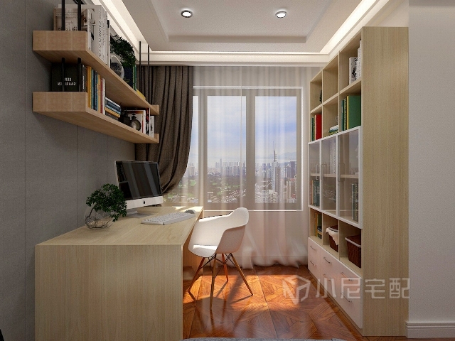 主臥室的書房以簡約風格的設計讓人眼前一亮??雌饋碚麄€空間簡單、舒適,書架的空間足夠容納下主人所有的書籍。
