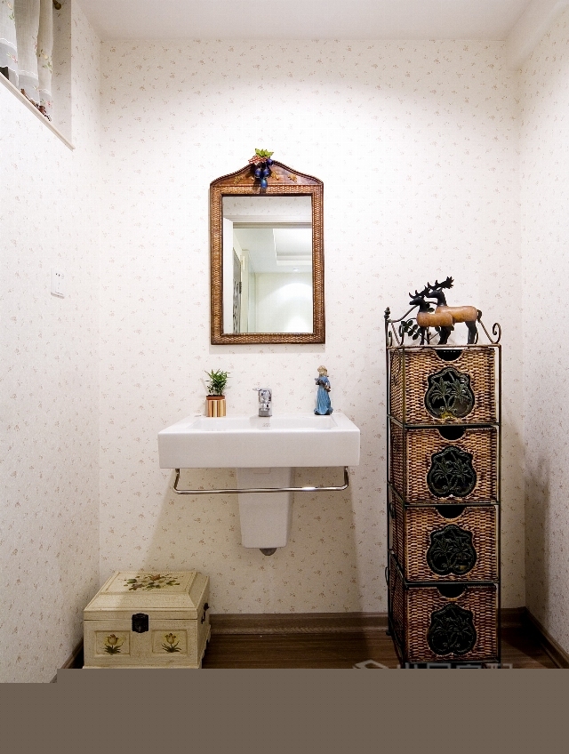 梳洗臺旁邊擺放一組小置物盒,還是為方便。