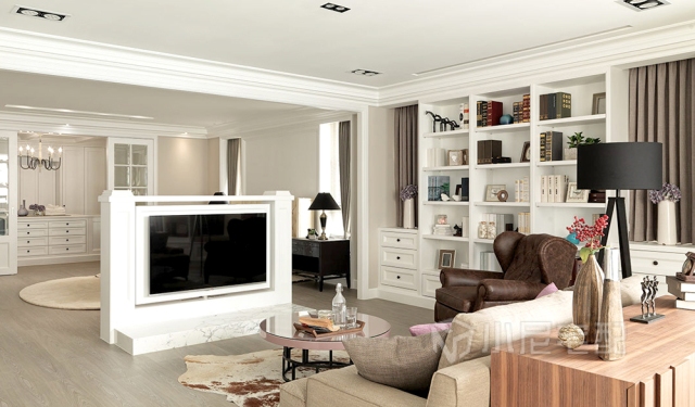 沒有誰會認為電視機的擺放很突兀,這反倒是一個很巧妙的格局設計。