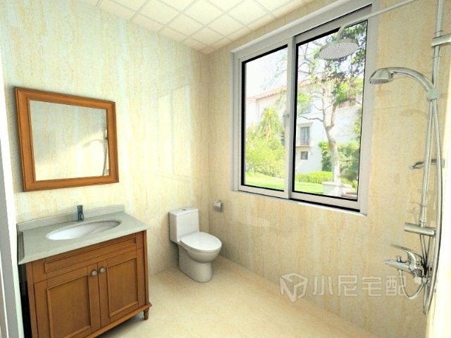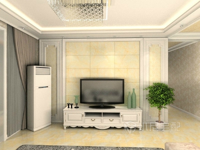 電視背景墻采用白色裝飾+壁紙+瓷磚的工藝,墻面瓷磚和地轉(zhuǎn)能夠呼應(yīng),中間用白色電視柜過度
