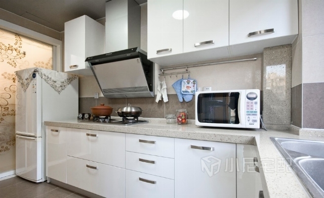 純白色的廚柜與大理石臺(tái)面相得益彰。